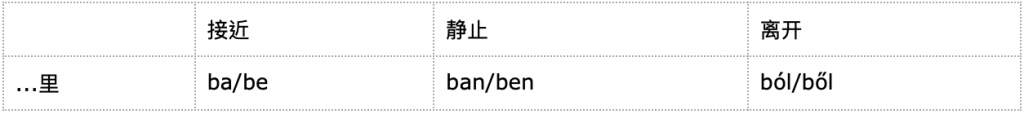 在这三个句子中,地点都是办公室。但是人的状态不一样。第一个是零动态,就是“我”是静止的, 那么iroda “办公室”要加“ban”。在第二句,“我”在接近“办公室”,“我”和“办公室”之间的距离在缩小, 变形为”ba”。在第三句,“我”在远离“办公室”,“我”和“办公室”之间的距离在扩大,变形为“ból”。